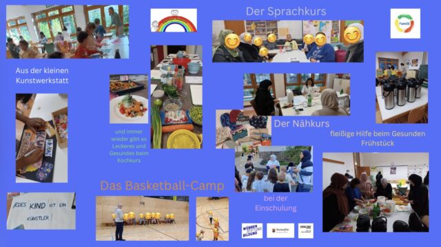 Darüber hinaus festigen sich Angebote, wie der Kochkurs mit dem Ernährungscoach Dirk Castor, der Nähkurs unter der Leitung von Frau Benmoussa, das Sprachcafé (geleitet von den Lehramts Studentinnen Frau Pivnickij und Frau Djeshane) sowie der Spiele Treff.